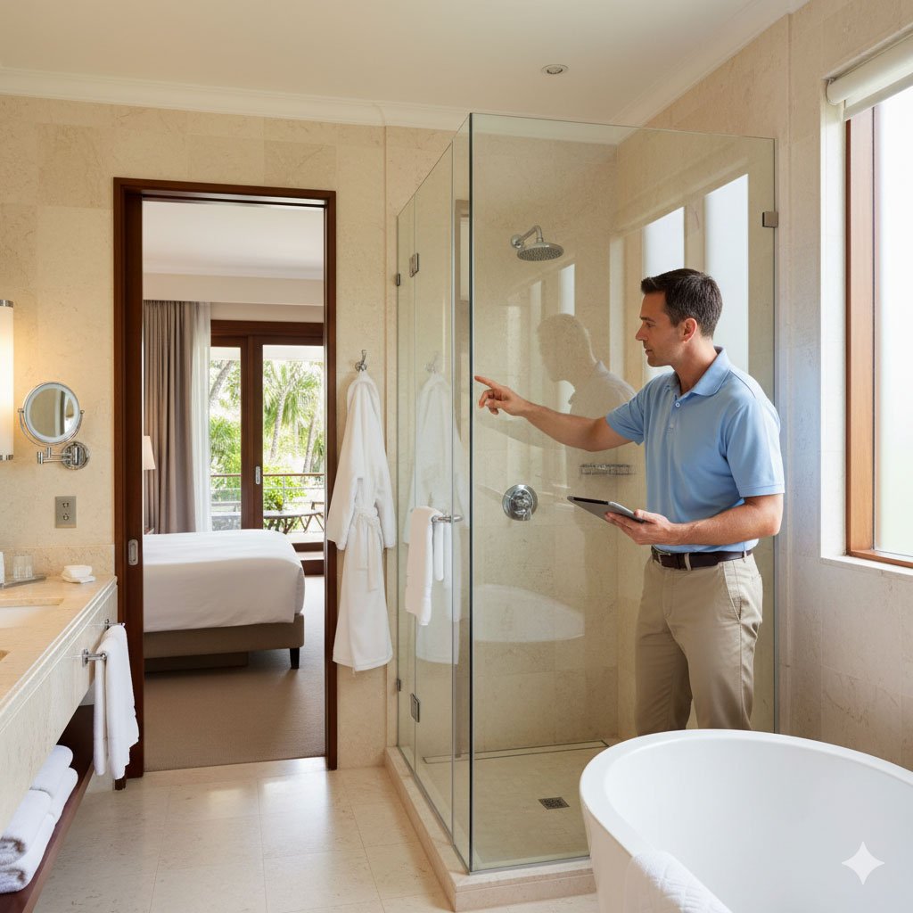 Piscinas y Spas Pruebas de balance químico y calidad del agua. Verificación de bombas, filtración, cubiertas y cumplimiento de seguridad. Evaluación de la experiencia del huésped y de la accesibilidad.
