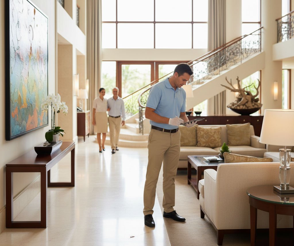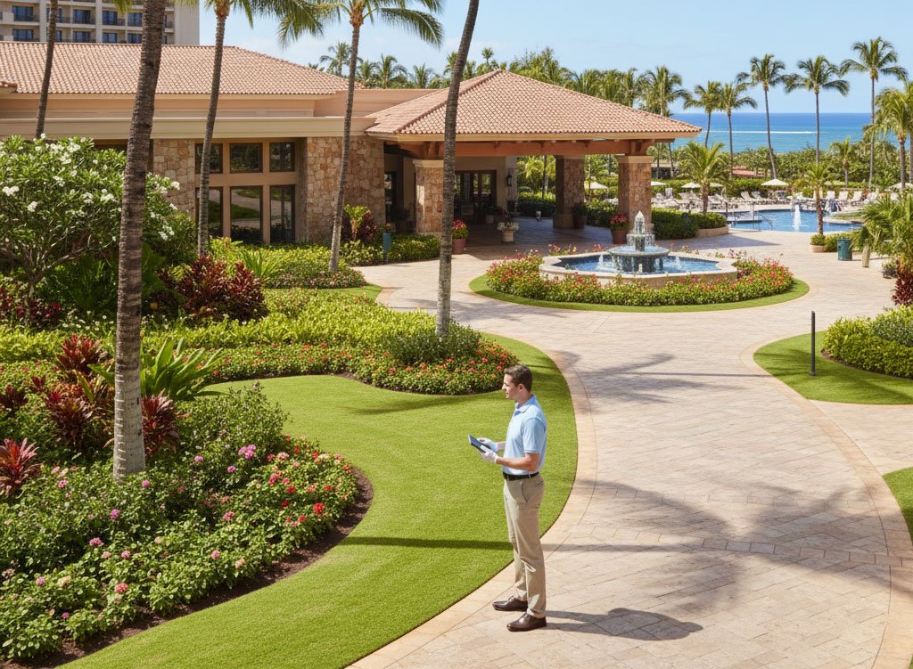 Áreas Verdes y Exteriores Inspección de jardines, césped y senderos exteriores. Revisión de riego, drenaje e iluminación exterior. Verificación de las áreas exteriores orientadas al huésped.