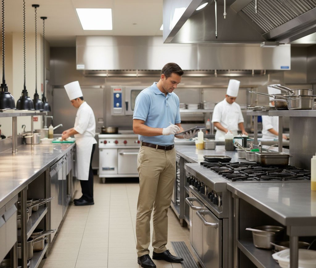 Cocinas y Servicios de Alimentos Verificación de higiene, flujos de trabajo y cumplimiento HACCP. Inspección del rendimiento de equipos, almacenamiento, refrigeración y manejo de residuos. Evaluación de procedimientos y registros de seguridad alimentaria.